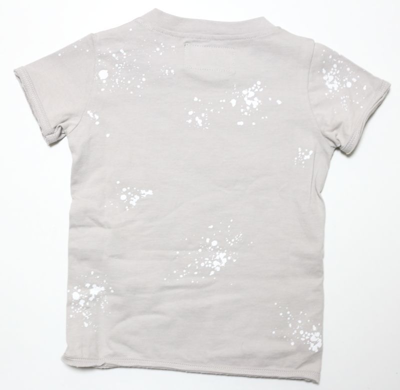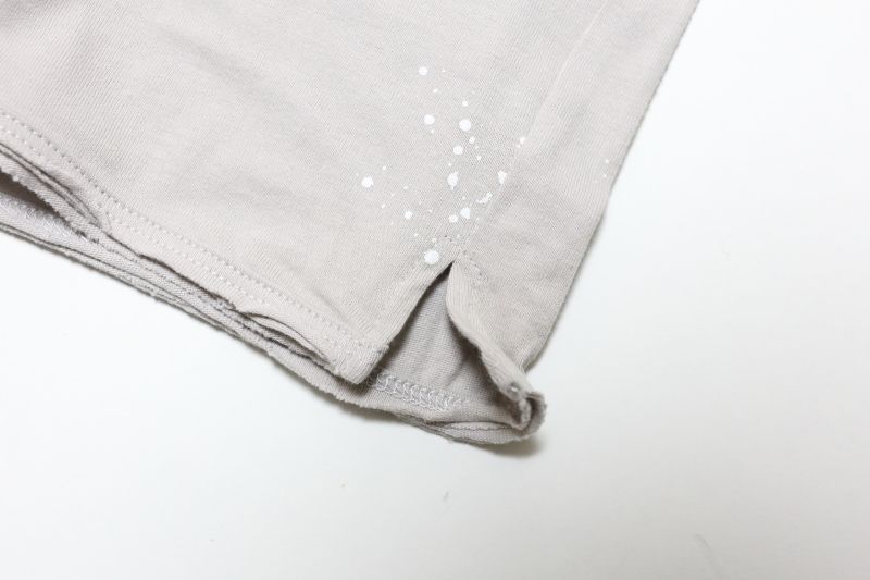 さらっとした風合いで肌触りの良い、シンプルなTシャツです。ほど良くタイト目のシルエットに短めの袖、カットされた裾下など、シルエットや着心地にこだわった大人っぽいデザインが魅力的です。パッと目を引くのが、胸元に配されたブランドロゴ。色をにじませたようなシックなアプローチに遊び心を感じます。全体にも、ペンキをさりげなく散りばめたようなプリントが配されており、ひとひねり遊びを効かせた、こなれ感のある仕上がりとなっています。首廻りが切替えられているので、よれにくく丈夫です。袖口や裾部分は、あえてほつれさせたユニークなデザインとなっています。