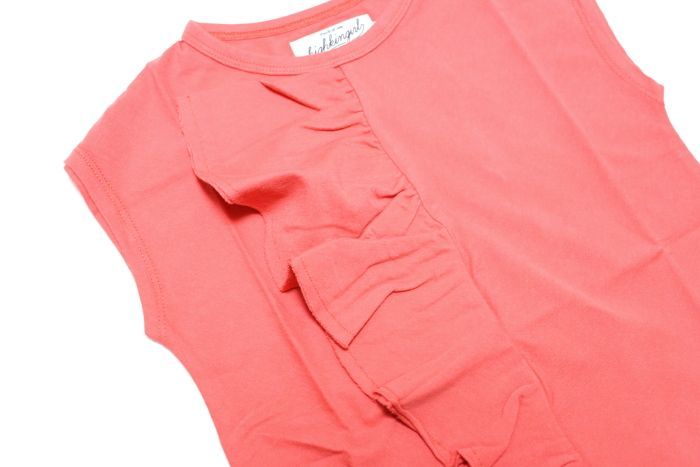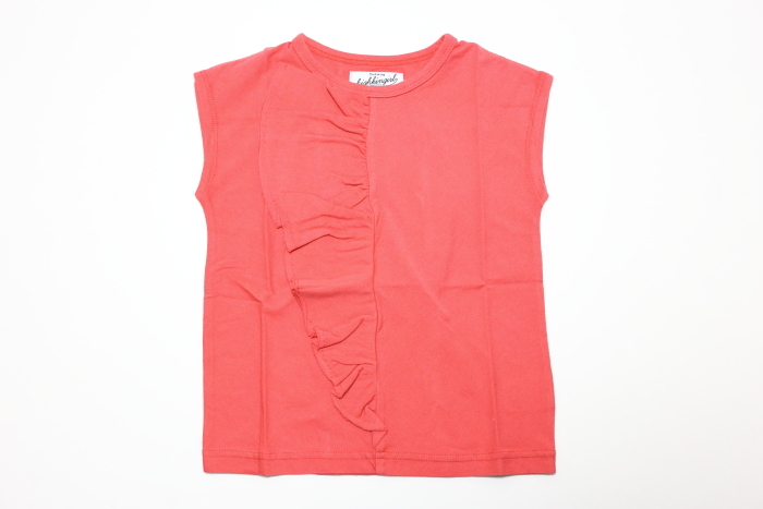 フロントのラッフルデザインが目を惹くフレンチスリーブ。しなやかな風合いにより、揺れ感やドレープが上品な1着。30/天竺素材を使用したサラッとして肌触りの良いのも特徴の1つ。