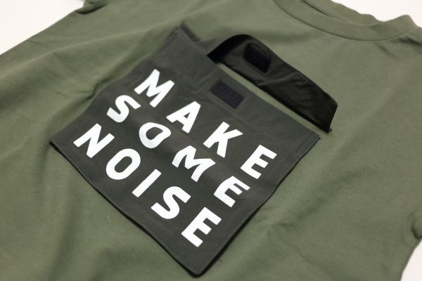 フロントに配置された異素材の大きなポケットやmake some noise(盛り上がろう!の意味)のプリントが存在感抜群なショートスリーブ。