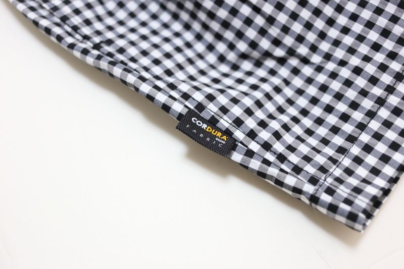 CORDURAファブリックを使用したチェック柄タイプライターショーツ。
