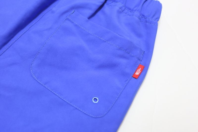 水辺でのアクティビティが楽しくなる、インタラクティブなショートパンツです。川や海に入って水に濡れるとロゴが浮き出てくる特殊プリント加工を採用。リサイクルポリエステル100%の生地は、ロゴ以外の生地部分にははっ水加工を施しており、水に濡れても素早く乾きます。UVプロテクト(UPF50+、紫外線カット率95%以上)機能付き。プールでの着用にも適した耐塩素仕様です。活発な子どもの動きを妨げにくく、動きやすさを追求したパターンを採用。水はけをよくするトリコット素材のインナーショーツ付き。ウエストはサイズ調節がしやすいスピンドル仕様です