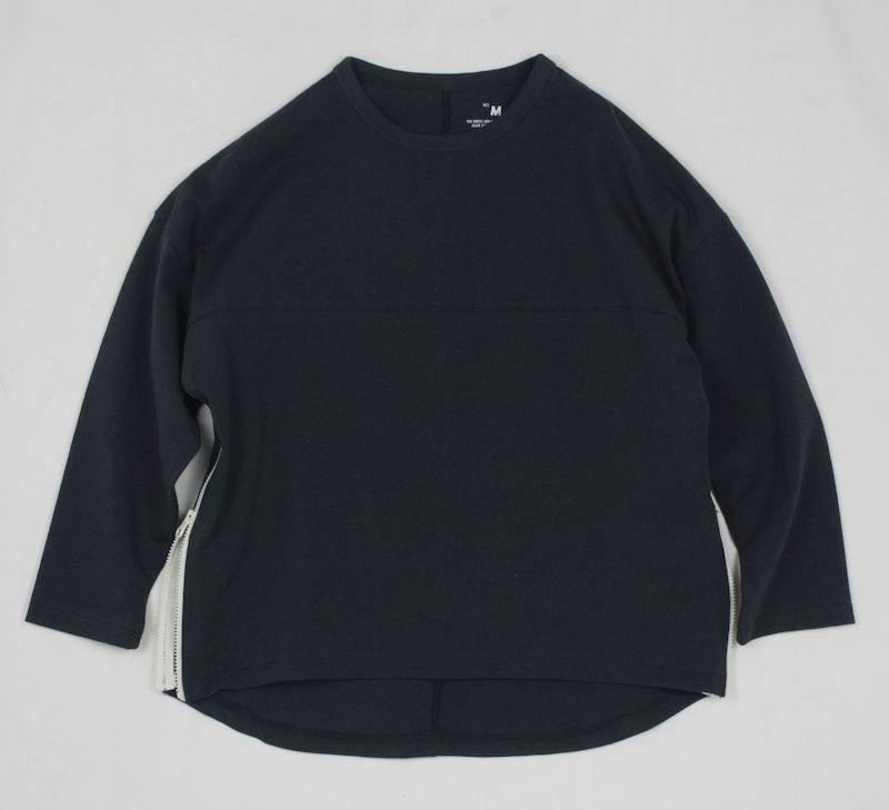 両裾に配色でジップを取り付けアクセントにしました。開いてシルエットを変えても楽しめます。