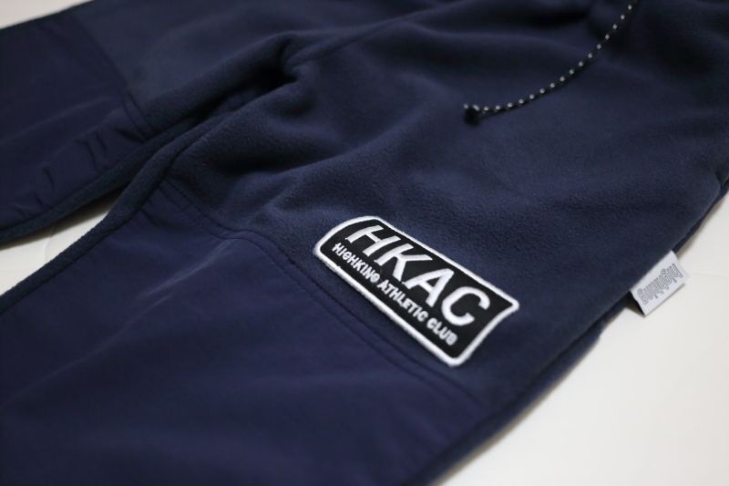 軽くて厚みのある柔らかな着心地を実感できる"フリース"素材を使用したトラックパンツ。 裏地をつけないことで保温性と通気性を両立させています。 また擦れやすい膝やヒップ部分には布帛で補強を施しており、タウンユースにはもちろん、キャンプやアウトドアにも幅広く活用できるアイテムです。 腰回りは広めに股上は深めに設定することで着心地が良くまさにストレスフリー。 ワタリもゆとりある作りですが、裾にかけて絶妙にテーパードを入れ、裾口はゴムシャーリング仕様にすることで他のパンツにはないスタイリッシュなシルエットを演出します。ウエスト紐は飾りです。