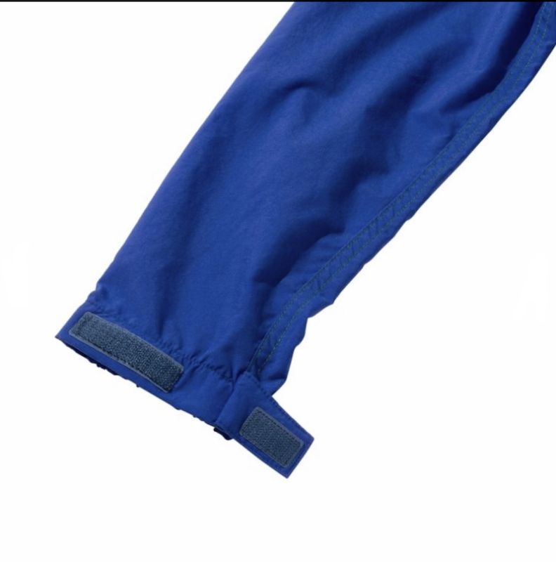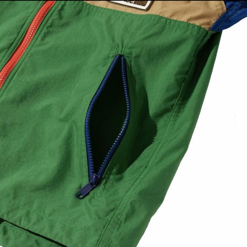 使い続けることでモノを大切にする気持ちを育み、愛着を持つ「キッズロングライフアイテム」コレクション。軽くて丈夫な生地にはっ水加工を施した、定番のウインドブレーカーです。ワッペンをつけてカスタマイズしたり、名前以外にも楽しかった冒険の記録を書ける大きめの記名ネームなどで、「自分だけの1着」にすることができます。年下の子たちにお下がりとして着続けてもらうことで、冒険を受け継ぐ楽しみも。フードはスナップボタンで取り外しが可能で、外したときにはボタンを襟の中にしまうことができます。UVケア(UPF15-30、紫外線カット率85%以上)機能付き。静電気の発生を抑制する静電ケア設計を採用。左前身頃内側に記名ラベル付きです。