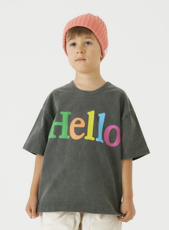 SMOOTHY スムージー USAコットンHELLO Tee【BLACK】【90-160cm】 [31CS-02]
