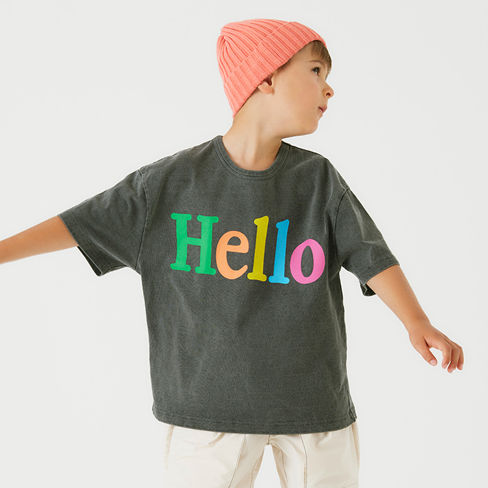 カラフルなHelloをプリントしアクセントになるようデザインしました。