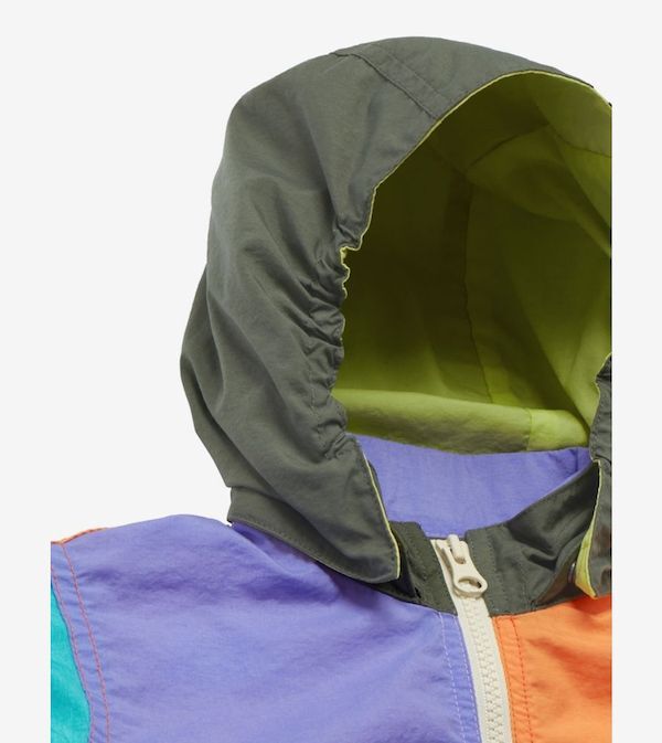 年下の子たちにお下がりとして着続けてもらうことで、冒険を受け継ぐ楽しみも。フードはスナップボタンで取り外しが可能で、外したときにはボタンを襟の中にしまうことができます。