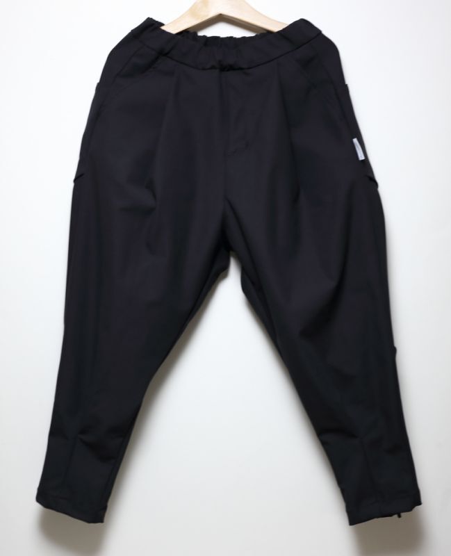 ウエストとポケットのサイドに深いタックを施し、足首をジップ仕様にすることで他には類を見ない立体的なシルエットに仕上げたパンツ。 前後左右、様々な角度から見ても只ならぬ佇まいに仕上げました。 TORAY Primeflexを使用し、優れたストレッチ性を誇り、軽量感と快適性を兼ね備えたうえ、吸水速乾まで併せ持つ。 時流にあったシルエットに再編集した今季イチオシの1本。