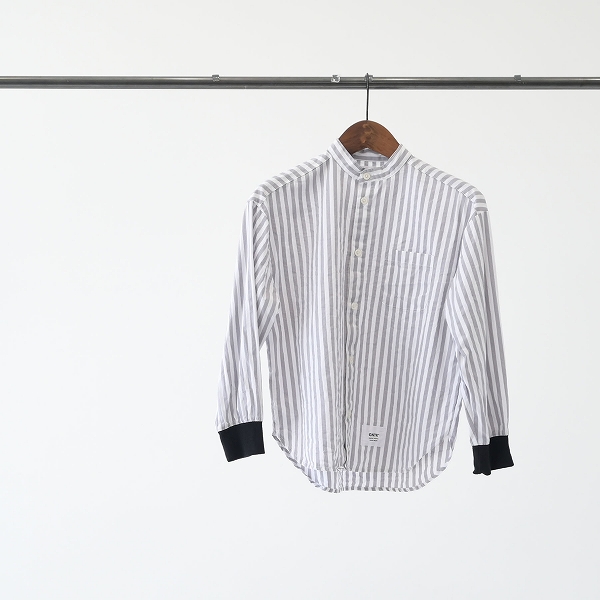 羽織でも1枚でも着用しやすいバンドカラーシャツ。