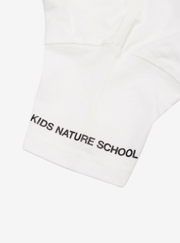 生地は天然素材で風合いのよいオーガニックコットンを採用。肌触りがよく、柔らかな着心地です。背面には、森の生き物やアウトドアの道具に囲まれた親子のグラフィックをプリントし、KNSのコンセプトである「We can learn from nature.」を表現しています。