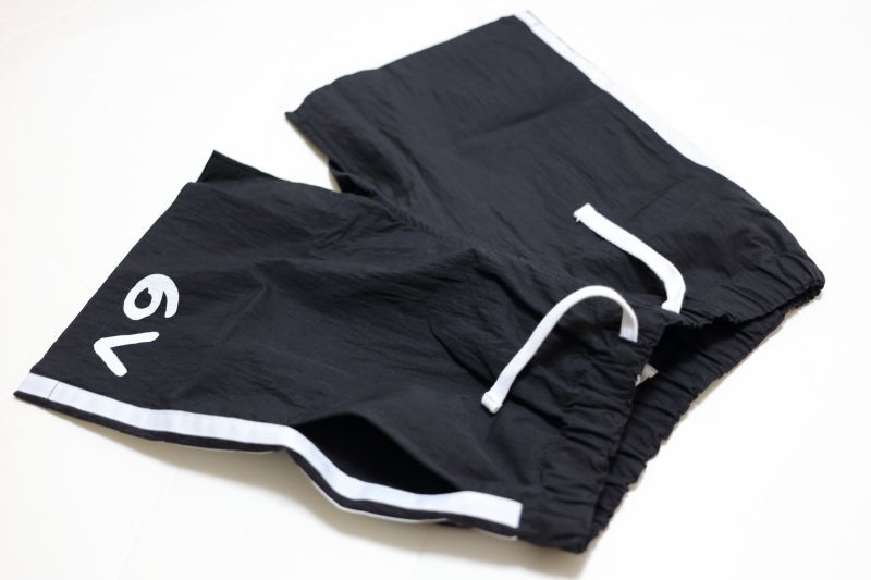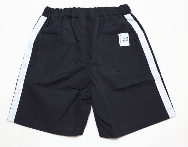 両脇に幅の違う2本のグログランテープが縫い付けられたスポーティー感のあるショーツです。