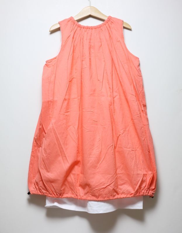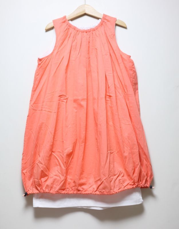 薄く織られた軽やかな布帛と天竺を重ね合わせレイヤード風にデザインされたワンピースです。