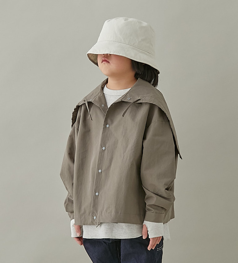 衿のドット釦を閉めるとフード、開けるとセーラーカラーになります