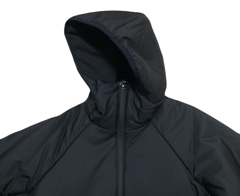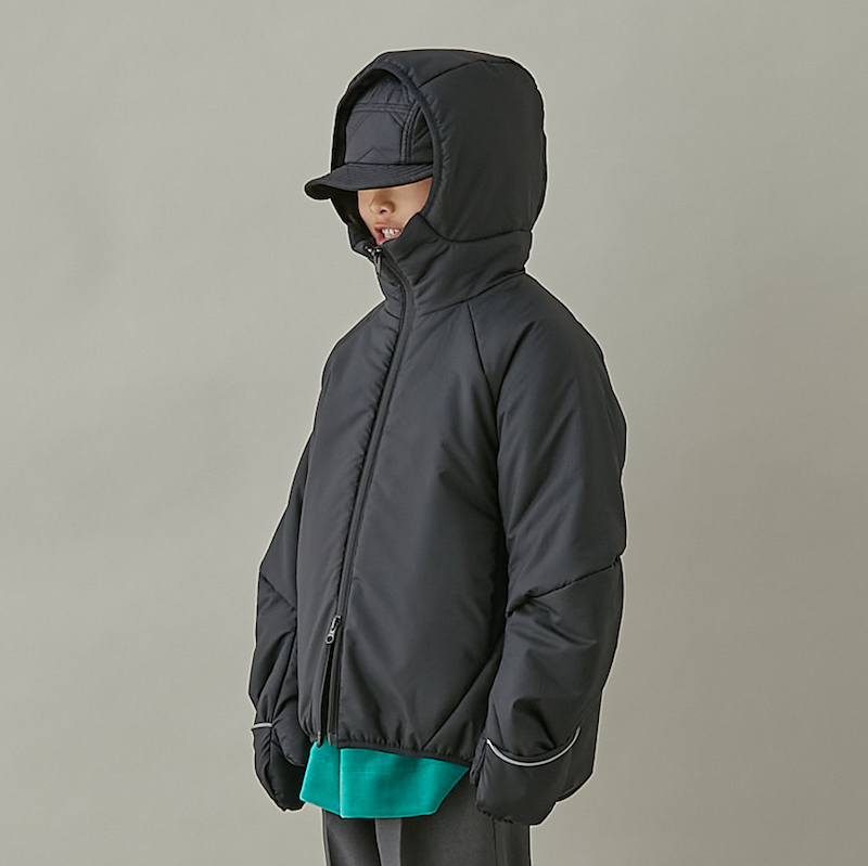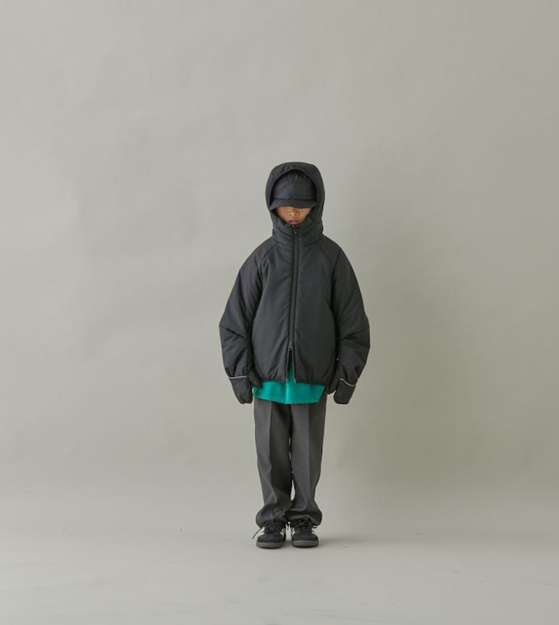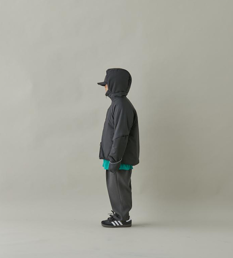 高めのフードや、絞られた裾、ミトンの仕様で、暖かさを逃がしません