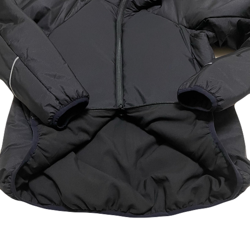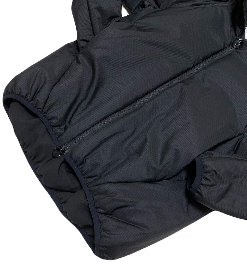 【素材】 | 表地:ナイロン100% 中綿:ポリエステル95%アクリル5% 裏地:ポリエステル100% |