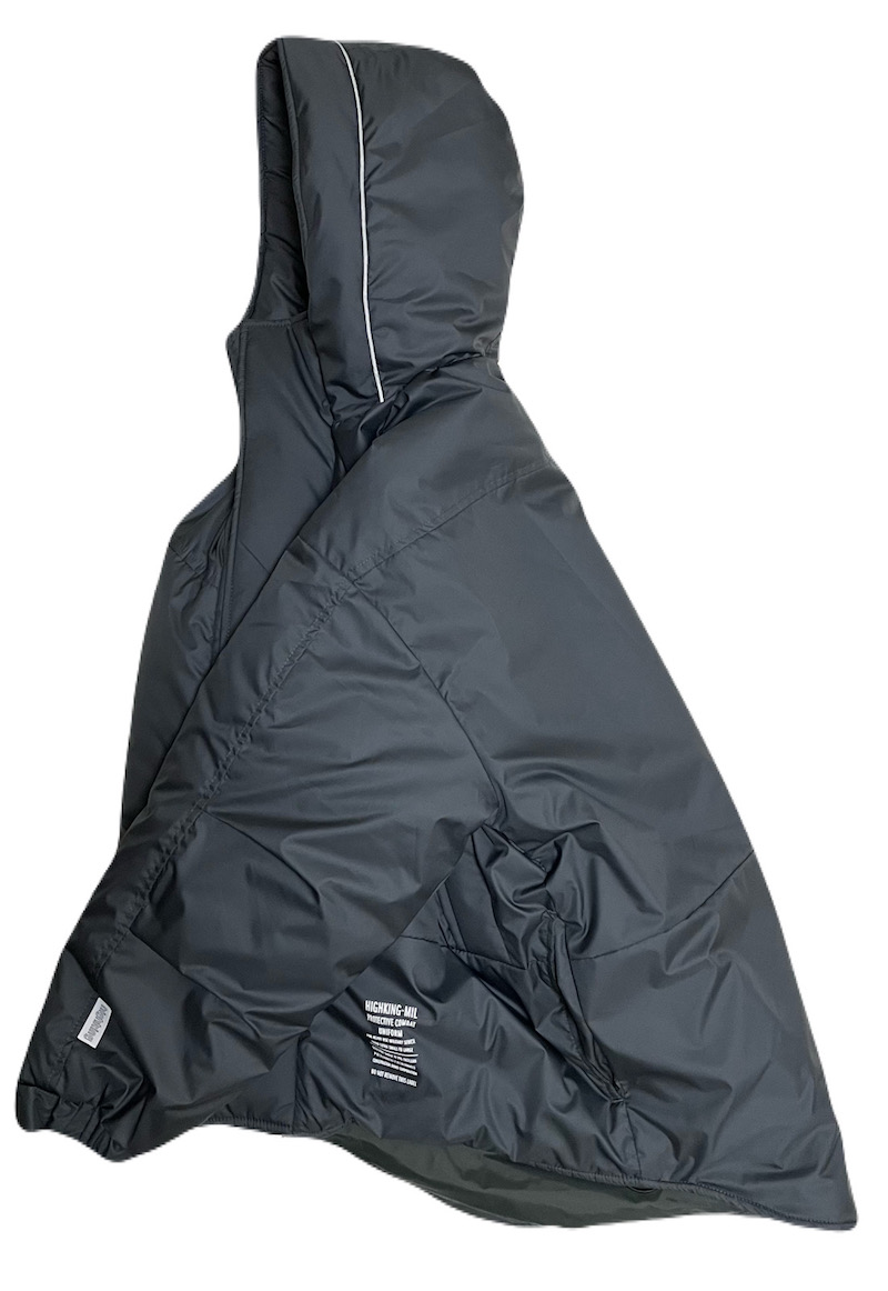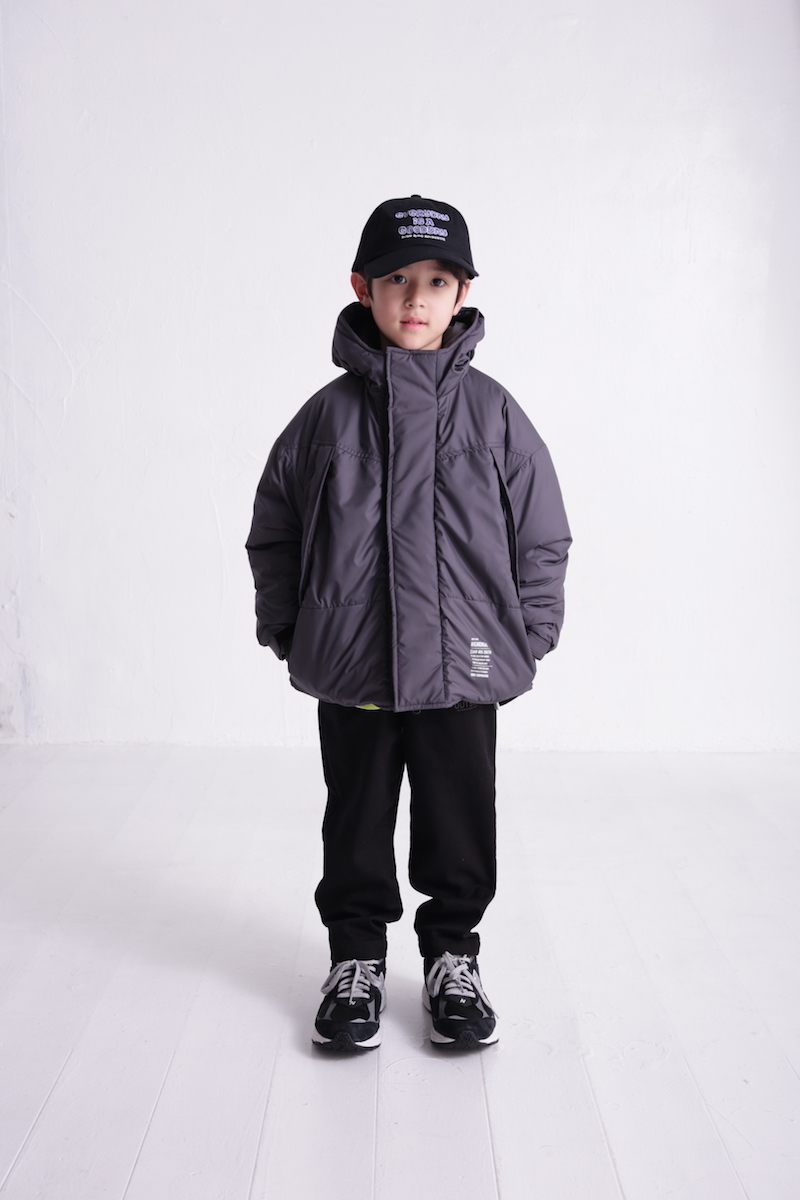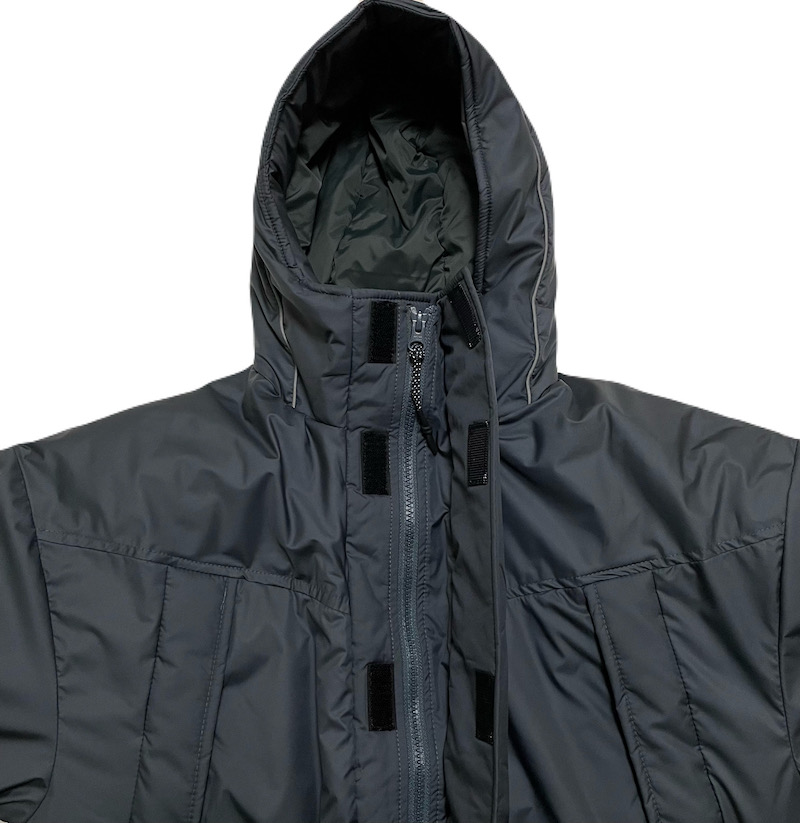 highkingらしいアプローチで大胆にもフード仕様に変更し、着丈・身幅・肩幅・アームホールなどオーバーサイズながらに実用性の側面から大幅にリサイズを行い、袖にはアクションプリーツや実用性の高いサイドポケットを施すなど、機能性と着心地を更に向上するため細部にわたり原型からアップデート。