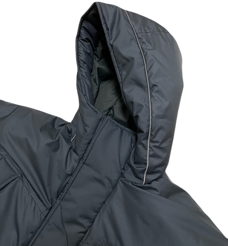 フードの切り替え箇所にはリフレクターをパイピングして、デザインのアクセントとセーフティーなスペックをプラス。