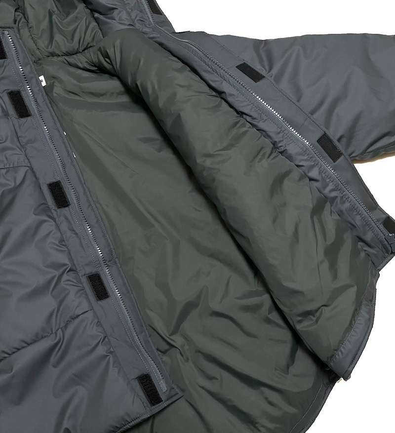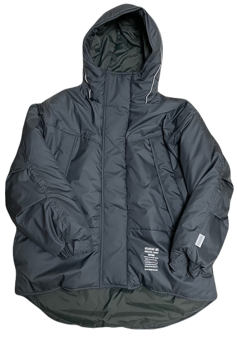 "monster parka"と呼ばれる極寒冷地最強の称号を持つミリタリーコートをhighking独自の視点から現代風に再構築した中わたジャケット。