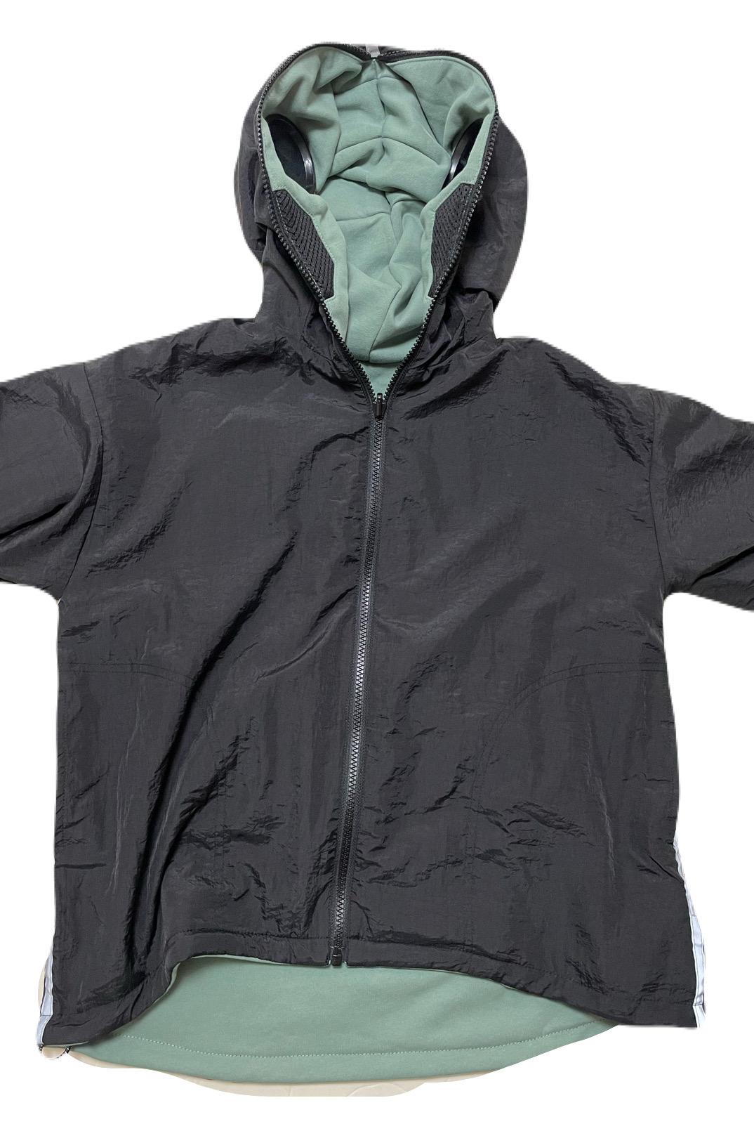 フード&マスク付きリバーシブルジャケット。裾にドローコードで調整可能。