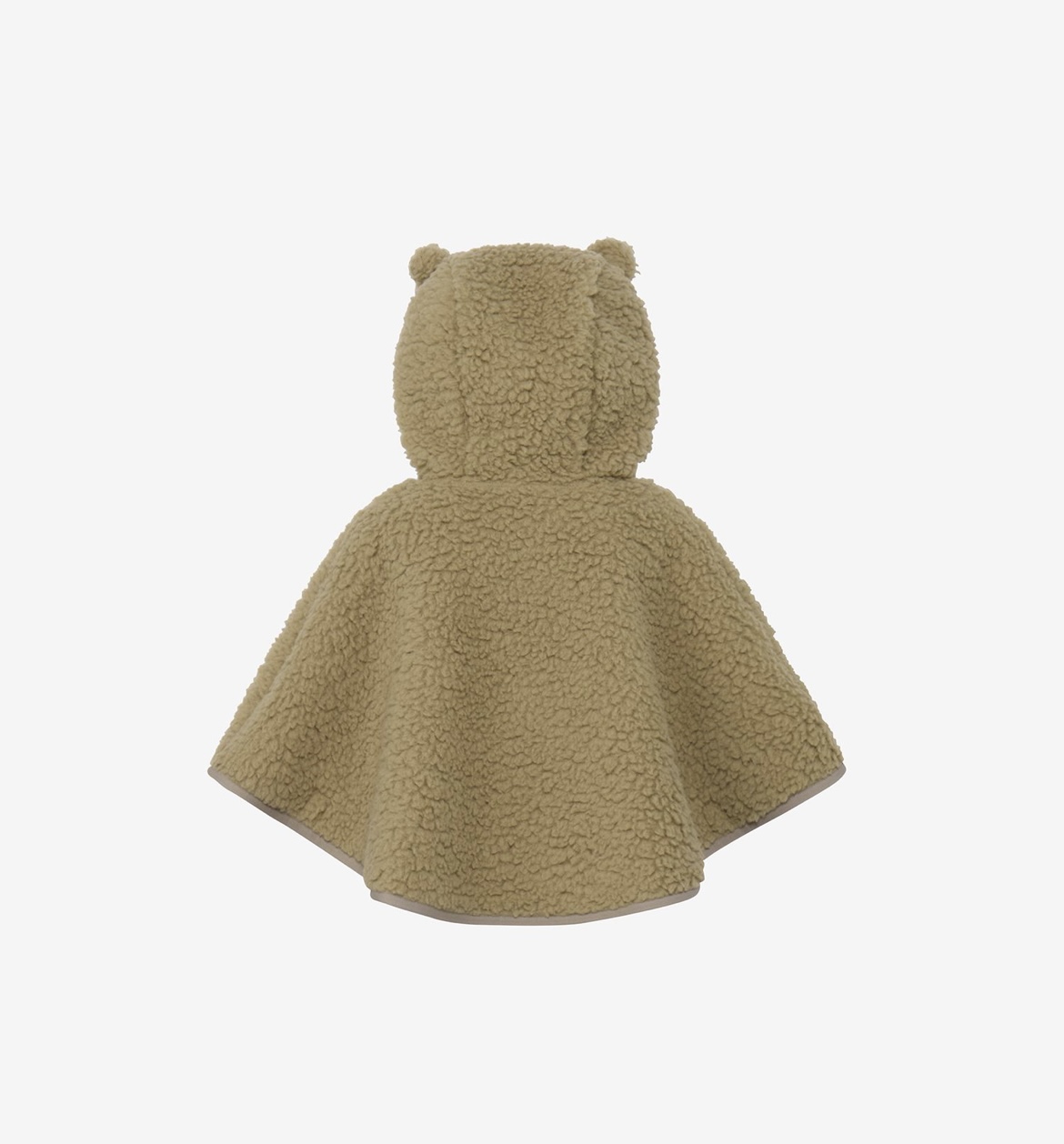 リサイクルポリエステルを使用した、保温性の高いフリースポンチョ。