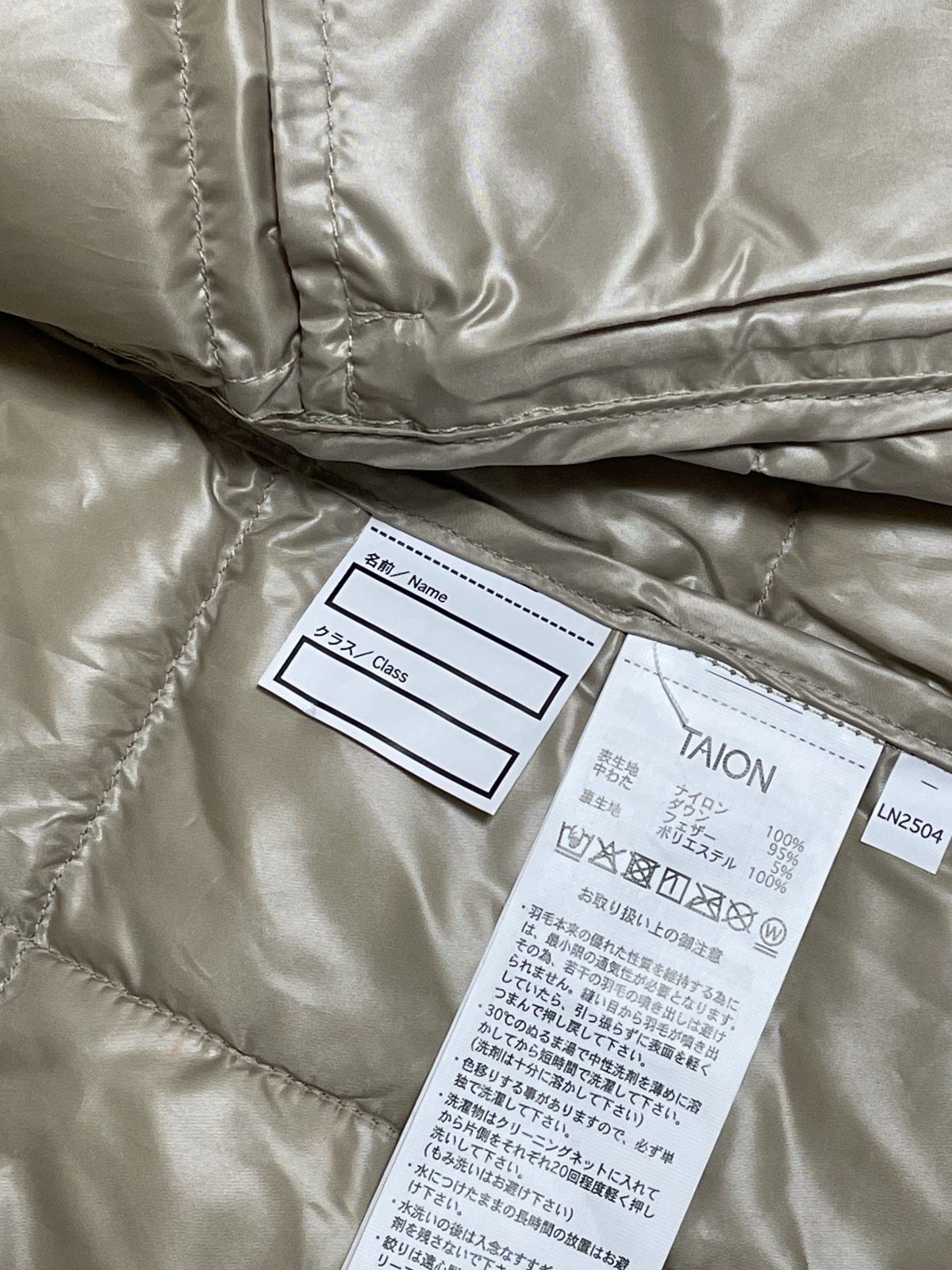 TAIONは、嵩高の高い800FPのダウン(羽毛)を採用しています。 一般で使用されるダウン(一般:600FP前後)よりも軽くて、 暖かい空気をたくさん含むことができます。