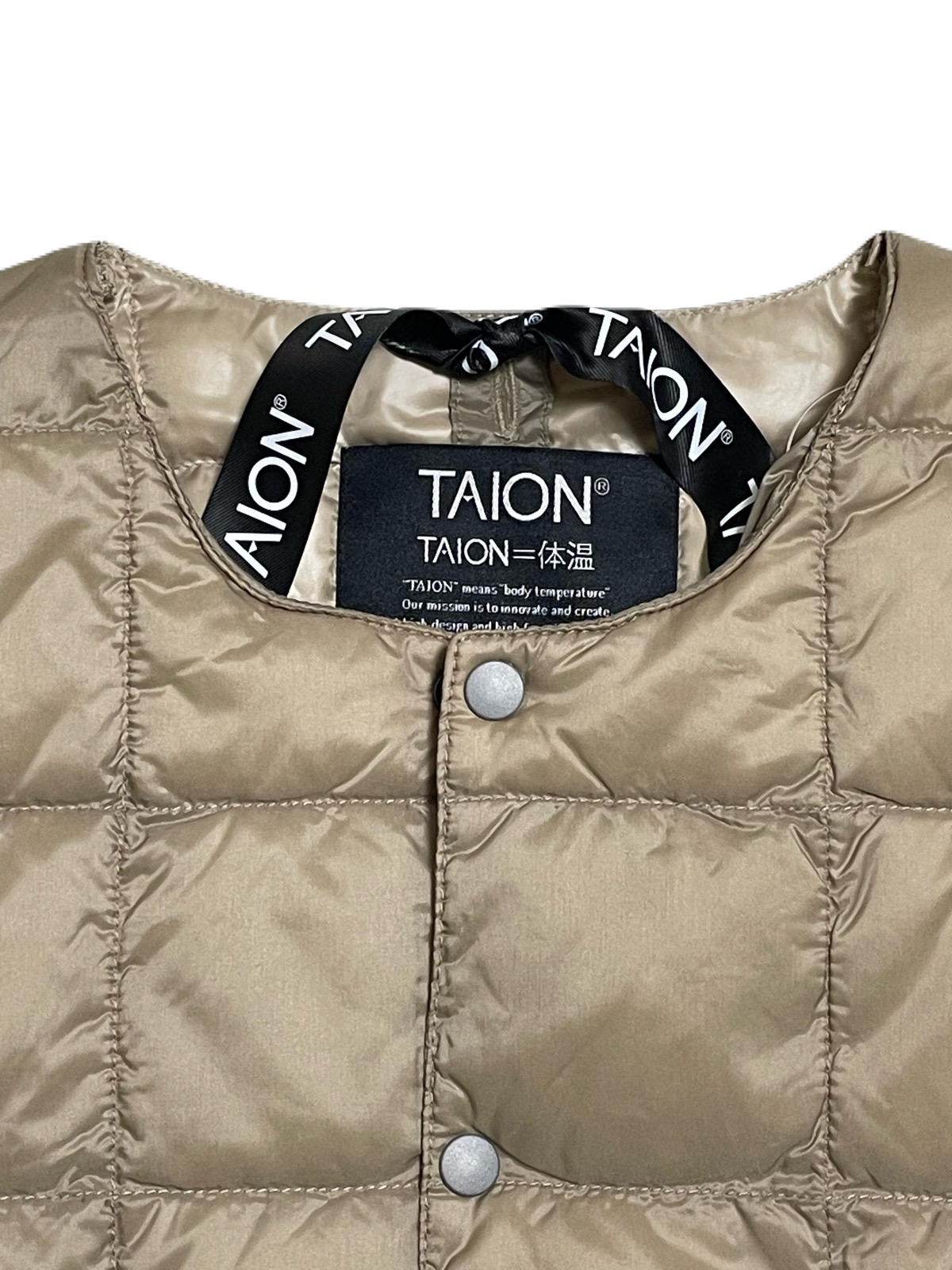 TAIONは、2016 年日本発のインナーダウンに専業したブランドとして展開。 ブランド名の由来は、TAION=体温(潜在的な暖かさ、日本発のイメージ) クオリティーに対して圧倒的な コストパフォーマンスによる、価値の追求を スローガンとし、 高品質で高機能なインナーダウンを幅広く展開している。
